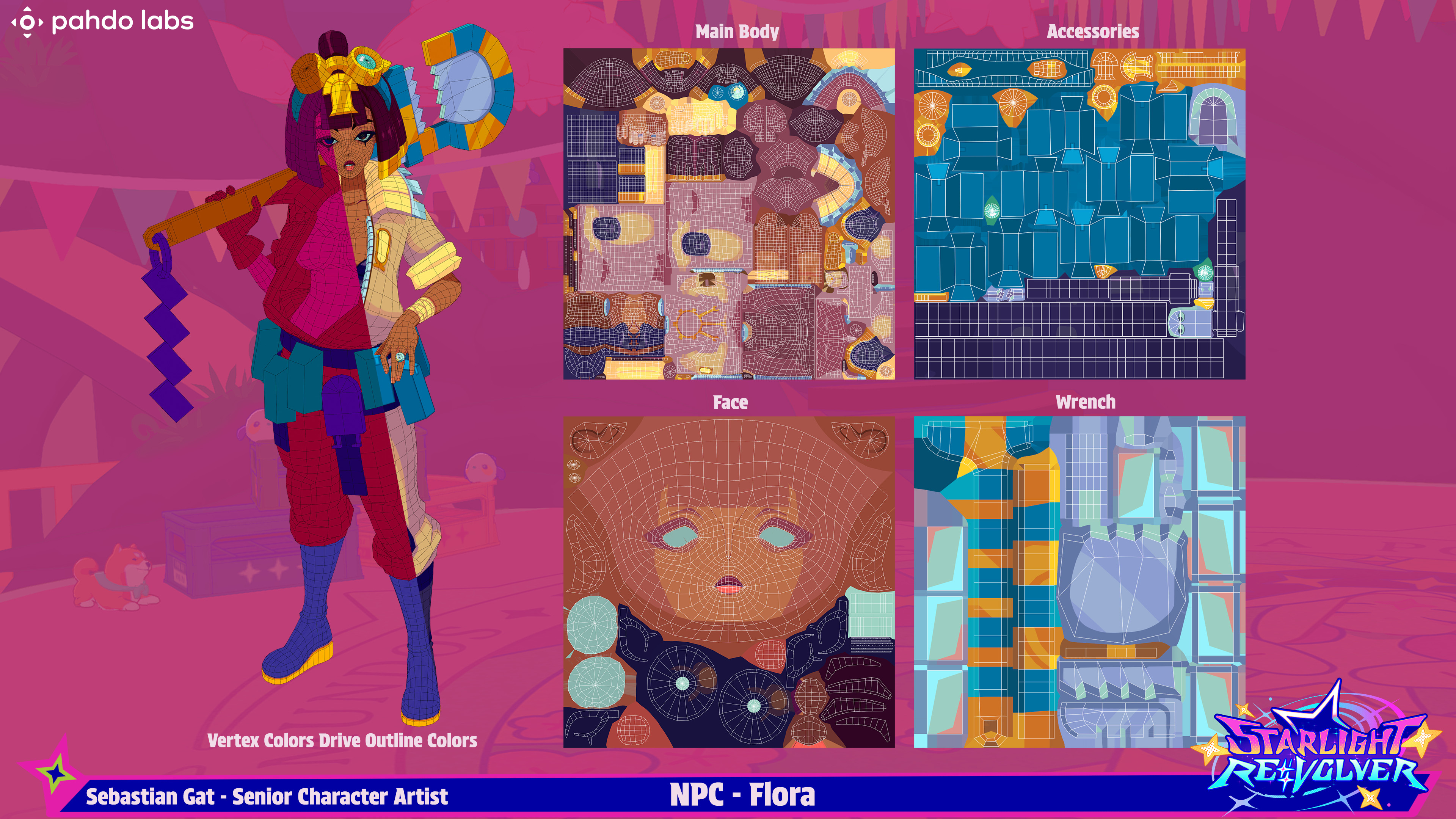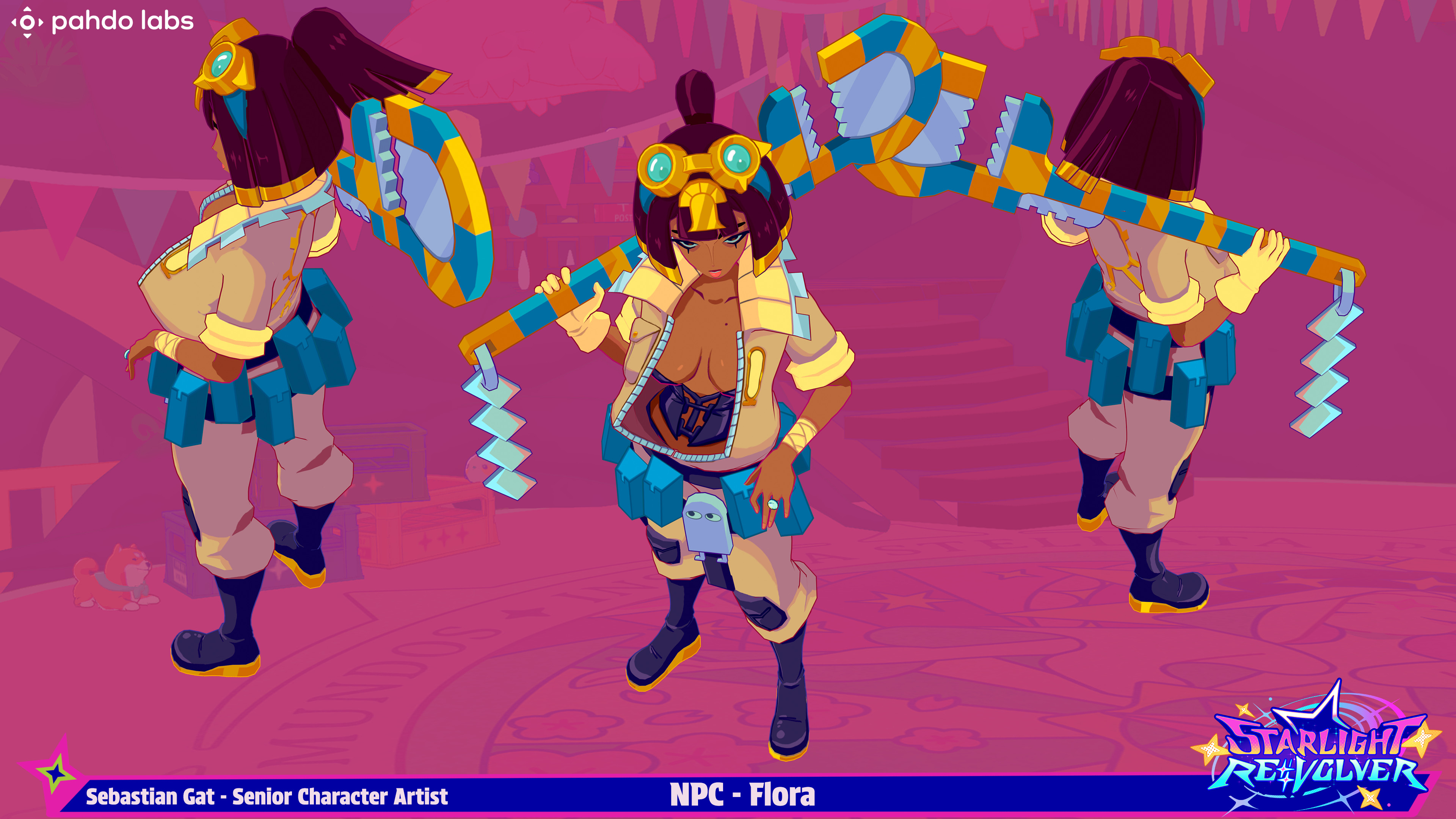I was responsible for making the model for the NPC Flora in Starlight Re:Volver. I was responsible for modeling and texturing. Designed by the amazing Alex Ahad with some paint over work by our Art Director Ashleigh Hetrick.